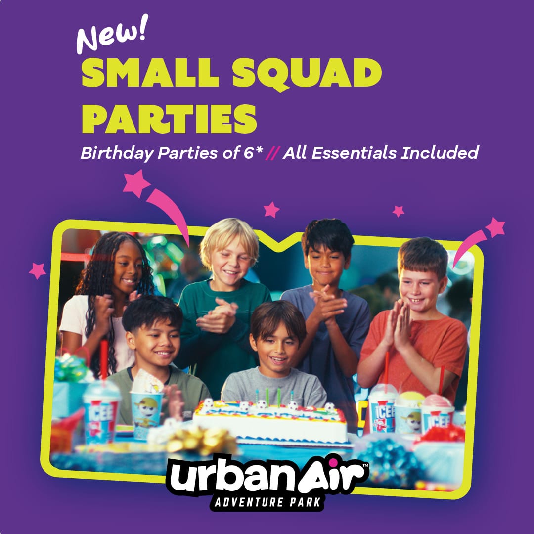 Celebrate with epic fun at Urban Air! Save $100 on our most thrilling birthday packages when you book today with code SAVE-100 (excludes Saturday bookings).